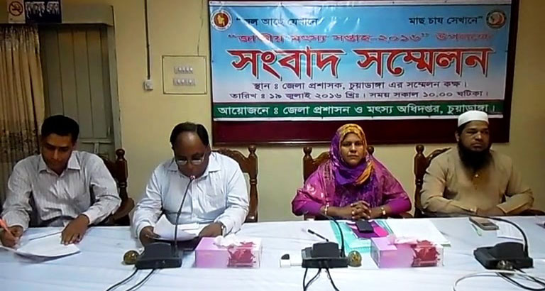 জল আছে যেখানে, মাছ সেখানে মাথাভাঙ্গা ডেস্ক: চুয়াডাঙ্গা-মেহেরপুরসহ বিভিন্ন স্থানে জাতীয় মৎস্য সপ্তাহ ২০১৬ উপলক্ষে সংবাদ সম্মেলন করা হয়েছে। গতকাল মঙ্গলবার সকালে এ মৎস্য সপ্তাহ উদ্বোধন করা হয়। এবারের জাতীয় মৎস্য সপ্তাহ ২০১৬’র স্লোগান হলো- জল আছে যেখানে, মাছ চাষ সেখানে। এবারের মৎস্য সপ্তাহ উপলক্ষে বিভিন্ন কর্মসূচি হাতে নিয়েছে জেলা ও উপজেলা মৎস্য অফিস। চুয়াডাঙ্গায়… Continue reading চুয়াডাঙ্গা-মেহেরপুরসহ বিভিন্ন স্থানে জাতীয় মৎস্য সপ্তাহ উপলক্ষে সংবাদ সম্মেলন