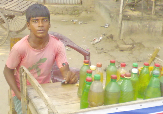 কিশোরের নাম জিজ্ঞাসা করতে সে বাধাবাধা কণ্ঠে বললো- ফিরোজ। এতে আরো জানা গেলো, তার কথা বলতেও অসুবিধা হয়। প্রতিবন্ধী বলে কি সে ভিক্ষা করে খাবে? এমন ইচ্ছা তার যেমন নেই; তেমনি নেই তার দরিদ্র পিতাসহ পরিবারের কারো। তাই তো জ্বালানি তেলের বোতল সাজিয়ে বসেছে সে।